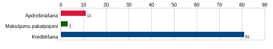 Finanšu pakalpojumu jomā sūdzības un jautājumi bija saistīti ar kreditēšanu, apdrošināšanu un maksājumu pakalpojumiem. Sūdzības un jautājumi par kreditēšanas pakalpojumiem veidoja 81 no 95 sūdzībām. Kreditēšanas pakalpojumu jomā 73 gadījumos patērētāji vērsās pēc palīdzības maksāšanas grūtību risināšanai.